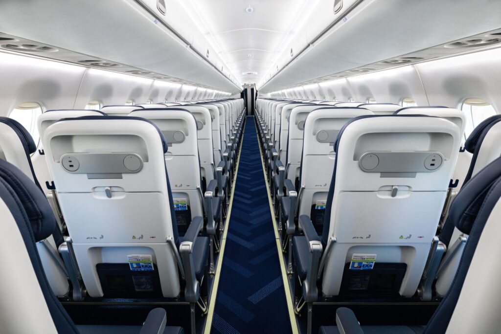 Zmodernizowany Embraer 190 teraz jest wyposażony w 110 foteli w konfiguracji 2-2. Dla większej wygody pasażerów, nowe siedzenia są tapicerowane skórą, a do ich wypełnienia użyto ergonomicznej pianki, co zapewnia większy komfort i trwałość. Każdy fotel o szerokości 46 cm, którego oparcie odchyla się o 7,5 cm, posiada indywidualny stolik oraz optymalnie zorganizowaną przestrzeń wokół – miejsce do przechowywania bagażu, wygodne składane podłokietniki, wieszak na ubranie oraz regulowany w kilku płaszczyznach, miękki zagłówek. Dodatkowo, przed każdym z pasażerów, na poprzedzającym fotelu, zamontowano wysuwaną podstawkę, na której można umieścić smartfon lub tablet. Dzięki specjalnej, żebrowanej powierzchni, uchwyt umożliwia bezpieczne i stabilne ustawienie urządzenia, aby w wygodny sposób korzystać np. z pokładowego Wi-Fi, oglądać film, czy pracować. Porty USB A i C umożliwiają wygodne ładowanie urządzeń. Kolejnym praktycznym udogodnieniem jest podwójny uchwyt na kubek przy każdym fotelu.